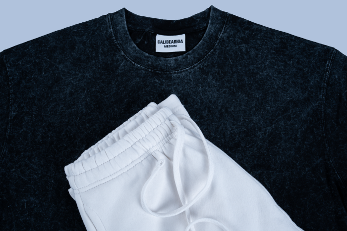 CALIBEARNIA Contrast Set: Washed Black Tee & Cream Joggers.